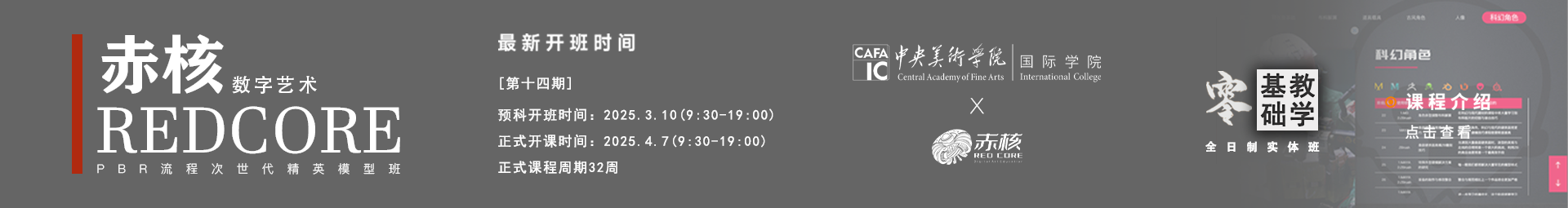 • 赤核教育成立于2019年6月,公司以CG人才培養為根本,聯合國內多所高校、企業開展人才、產業、科研等多方面合作。以“終身學習”為理念,實行全日制實體授課模式,技術學習結合實戰實操,從而實現100%就業保證,同時機構也接受其他同行企業的人才技術深造業務。